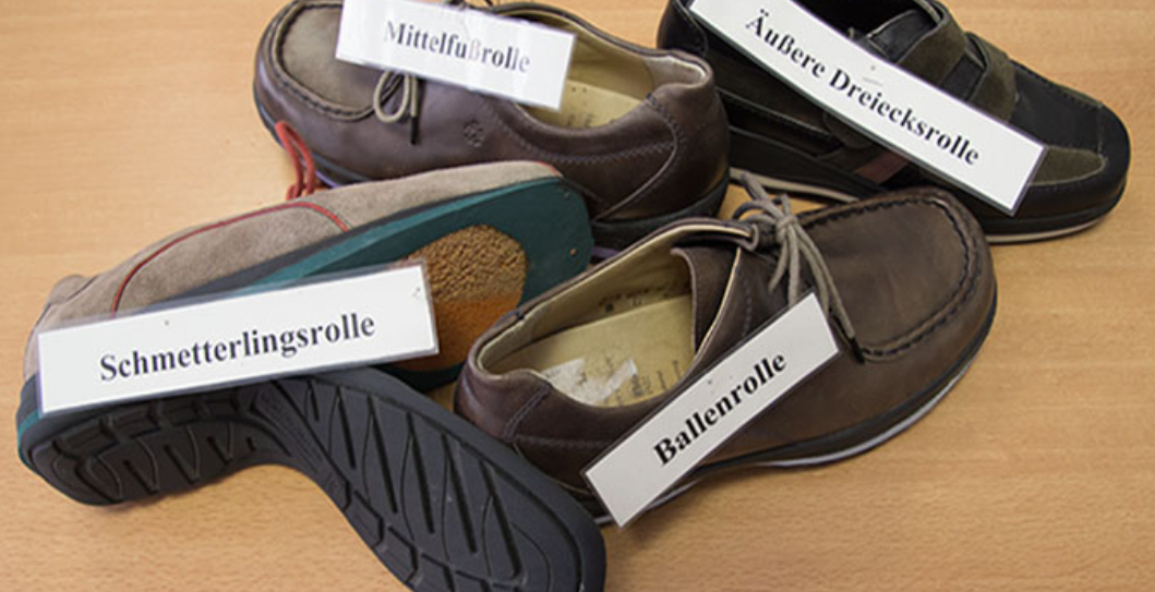 Zurichtungen dienen dazu, vorhandene Schuhe so zu verändern, dass dadurch Beschwerden, welche die Gehfähigkeit und Gehausdauer einschränken, beseitigt oder gemindert werden. Als Schuhzurichtung versteht man Beinlängenausgleiche Abrolhilfen Schmetterlingsrollen zur Entlastung der Mittelfußköpfchen bei einer Abrollhilfe Schuhinnenranderhöhungen oder Schuhaußenranderhöhungen Sohlenversteifungen